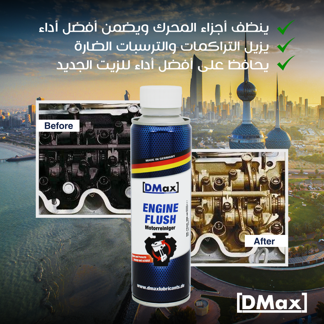 DMax – ديماكس ينظف أجزاء المحرك ويضمن أفضل أداء يزيل التراكمات والترسبات الضارة يحافظ على أفضل أداء للزيت الجديد